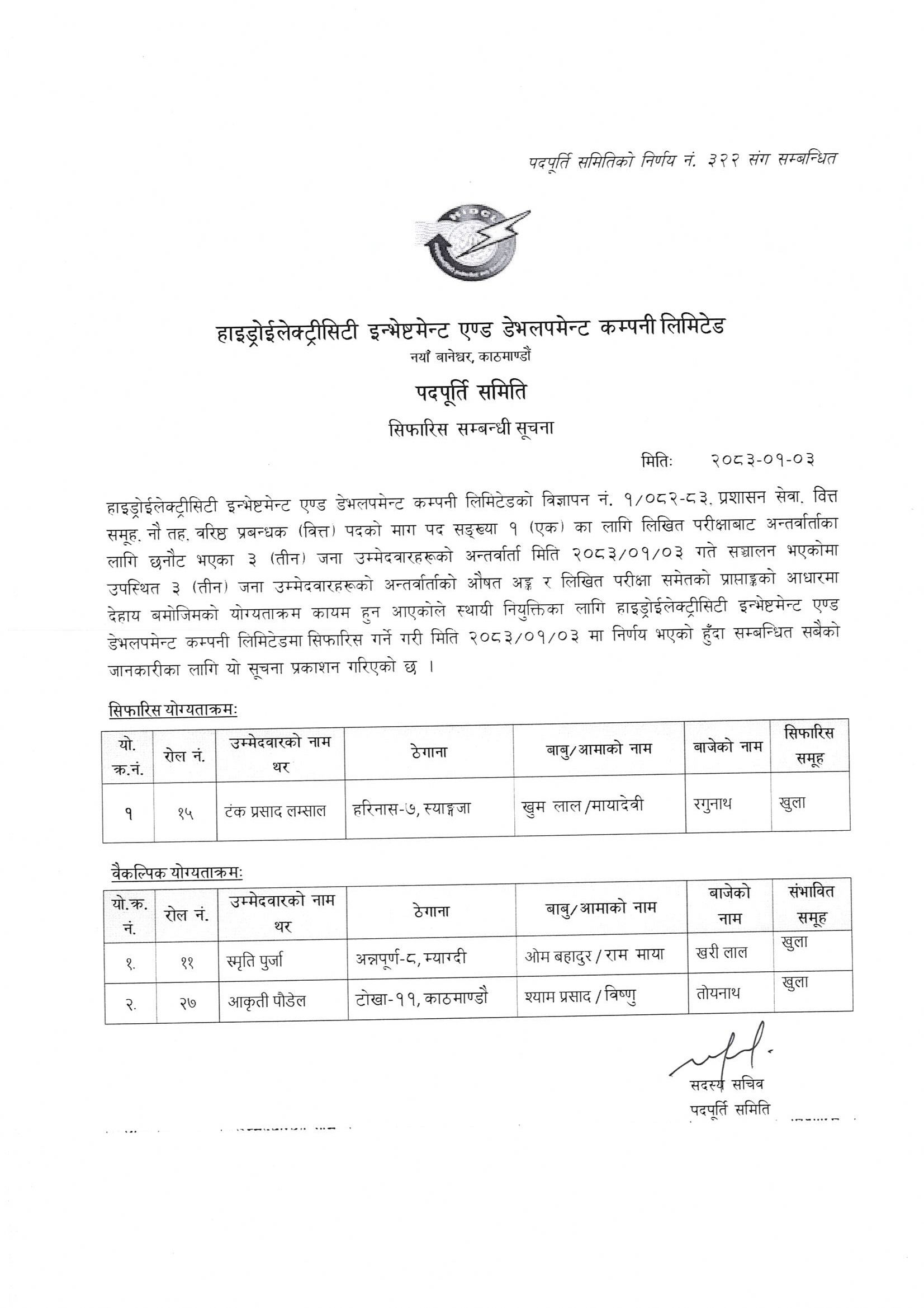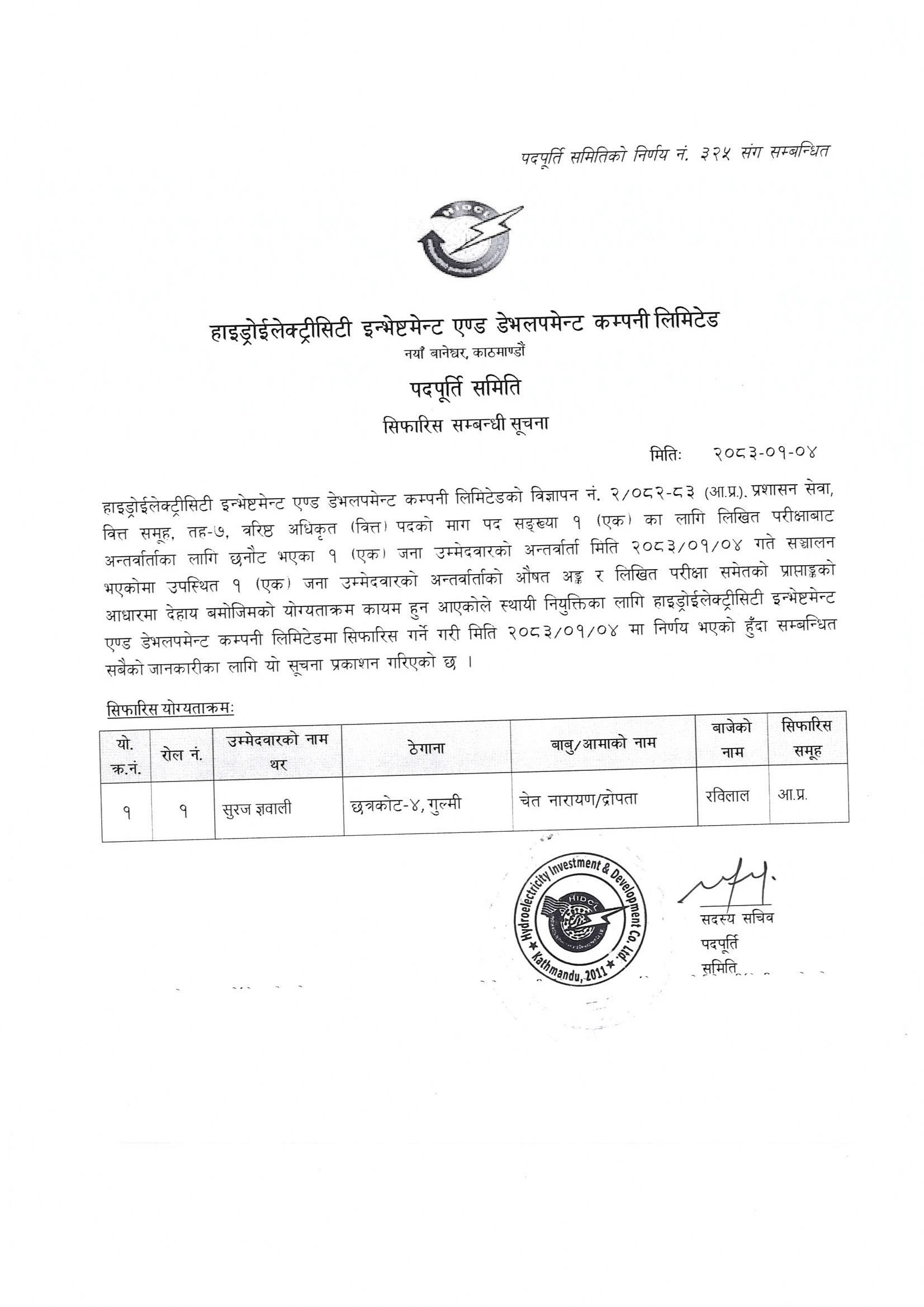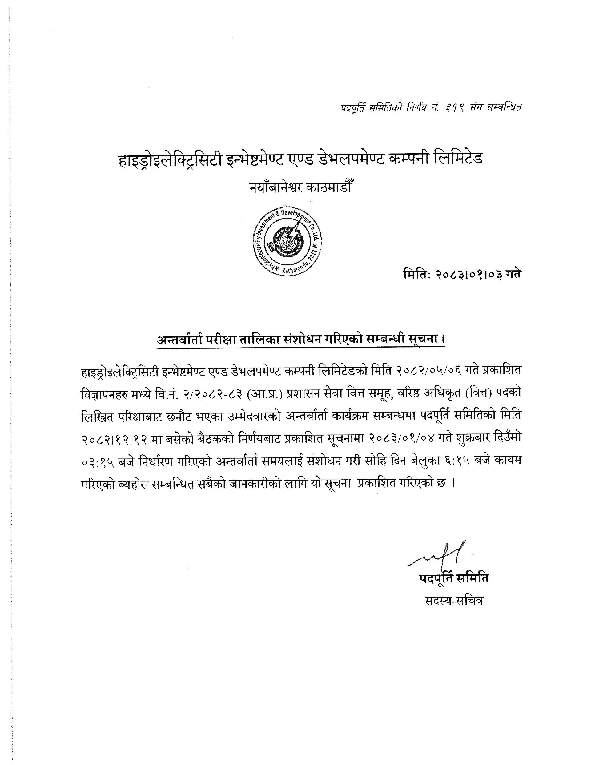 On July 11, 2011, Hydroelectricity Investment and Development Company Ltd. (HIDCL) was formally established in accordance with the Government of Nepal's decision. Engaged in a mission to mobilize funds from domestic and international resource base to cater to the needs of investments in middle to mega hydropower and renewable energy generation, transmission and distribution projects, offering timely and quality services to our customers and partners with professionalism and integrity, and creating value to our shareholders, HIDCL envisages to become the top hydropower and renewable energy investment company of the country.